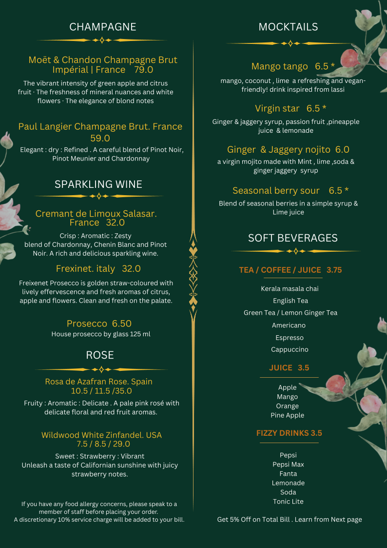 Whether enjoying a refreshing Mango Tango mocktail or a fine glass of sparkly wine, the ambience is enhanced by attentive service, making your dining experience truly unforgettable.